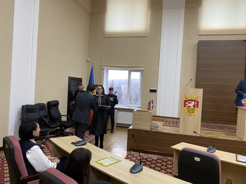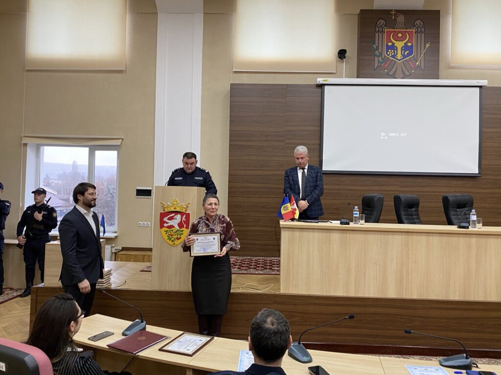 Vicepreședinta raionului, doamna Cristina Boicu, a adus mulțumiri polițiștilor pentru profesionalismul și dedicarea lor, înmînându-le Diploma de gratitudine a Consiliului raional.