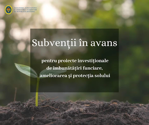 Se lansează apelul de cereri pentru subvențiile în avans pentru proiectele investiționale de îmbunătățiri funciare, ameliorare și protecție a solului. Perioada de depunere este între 20 ianuarie 2025 și 28 februarie 2025.